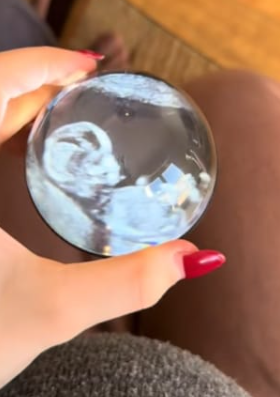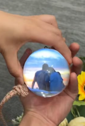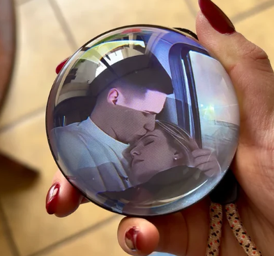 MemoriGlass is a video memory sphere with a built-in screen and sound. Just connect it via USB and upload your personalized video.