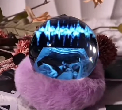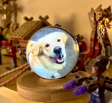 MemoriGlass features a 2.1-inch high-resolution screen inside a luminous glass sphere, delivering vivid visuals and immersive video playback with sound